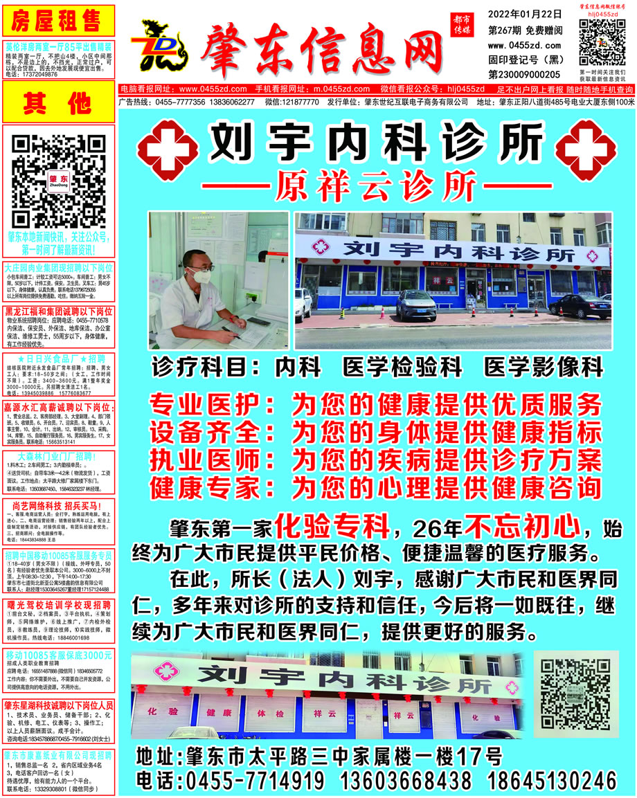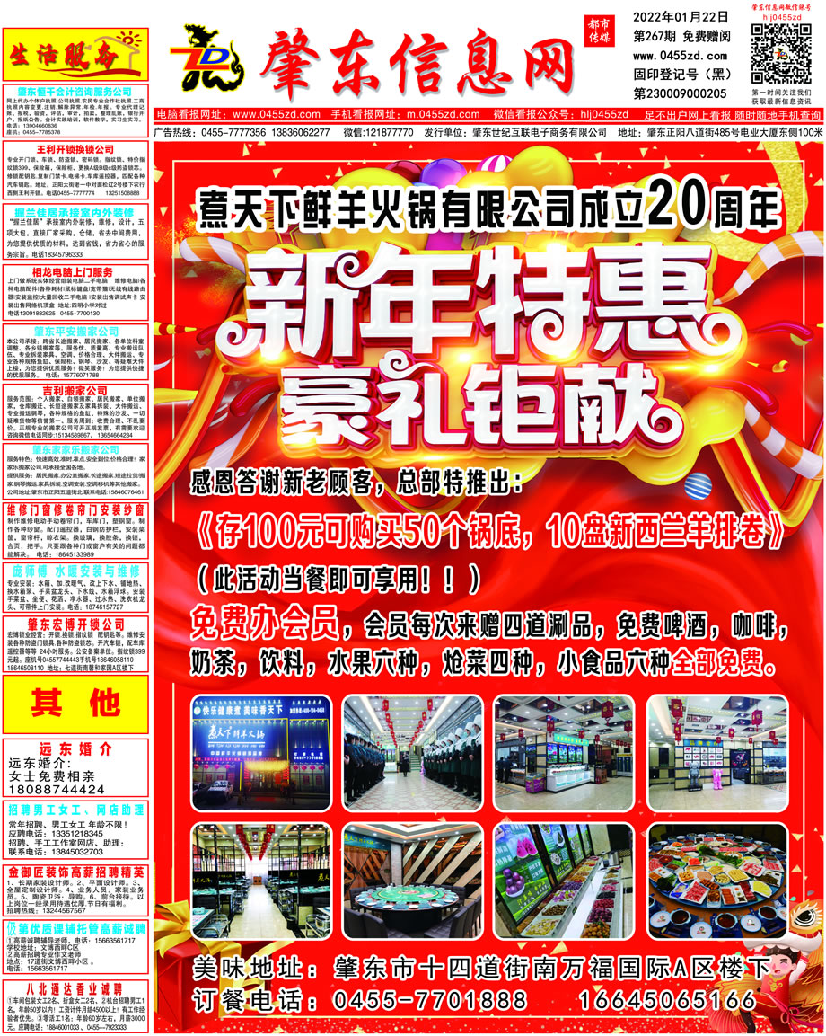 肇東信息網DM報紙2022年1月22日第267期