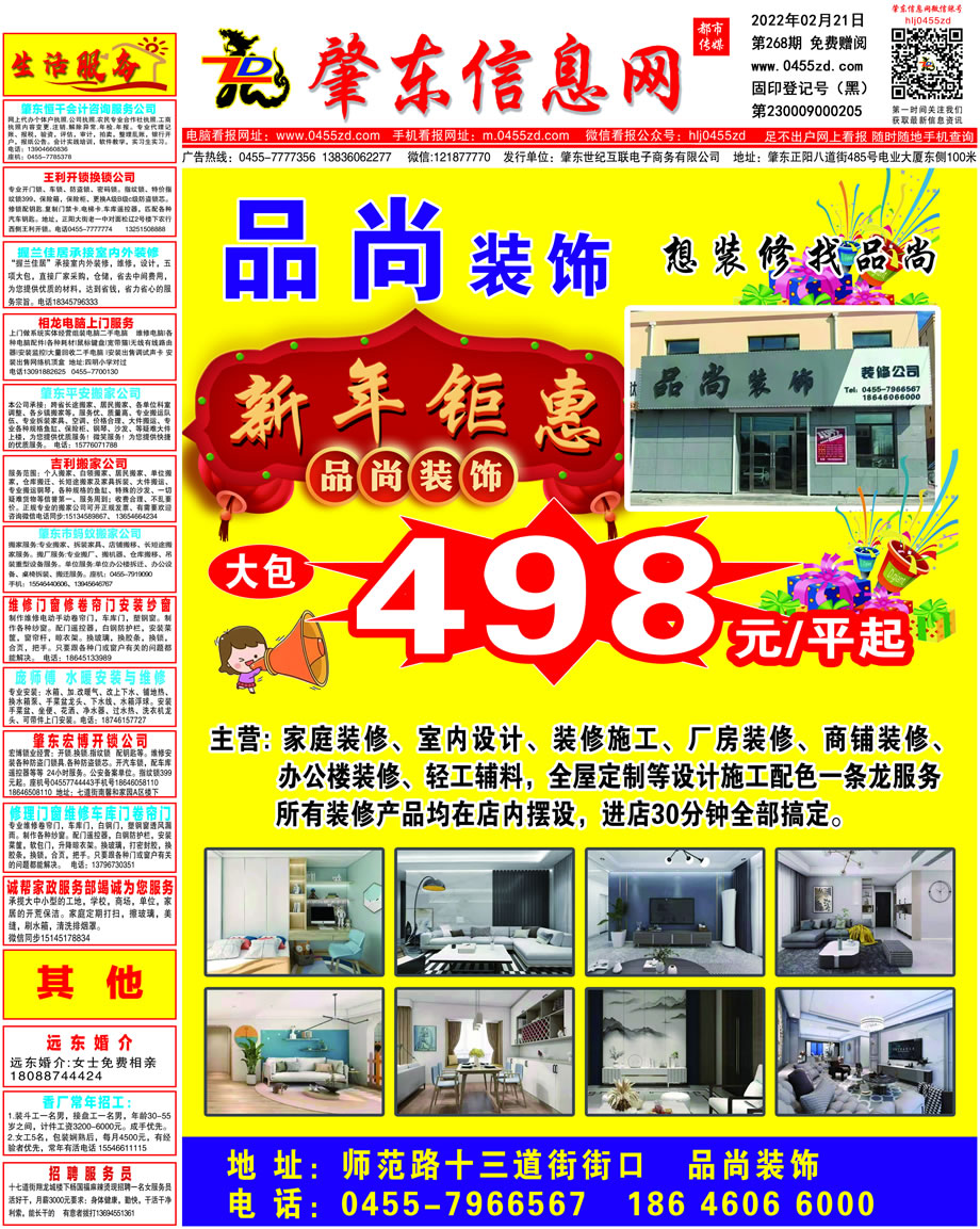 肇東信息網(wǎng)DM報(bào)紙2022年2月21日第268期