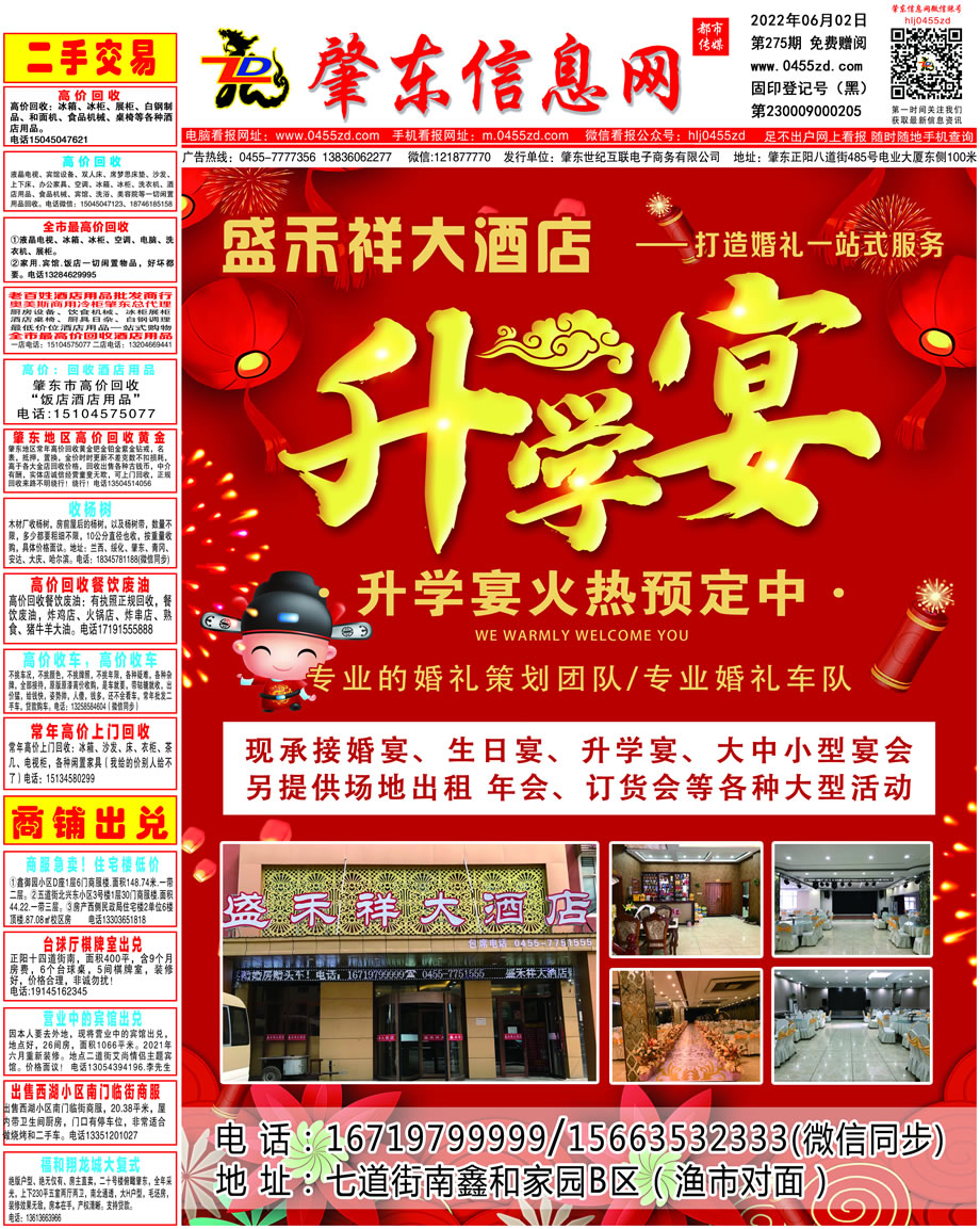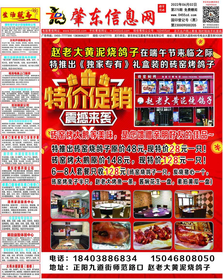 肇東信息網DM報紙2022年6月2日第275期
