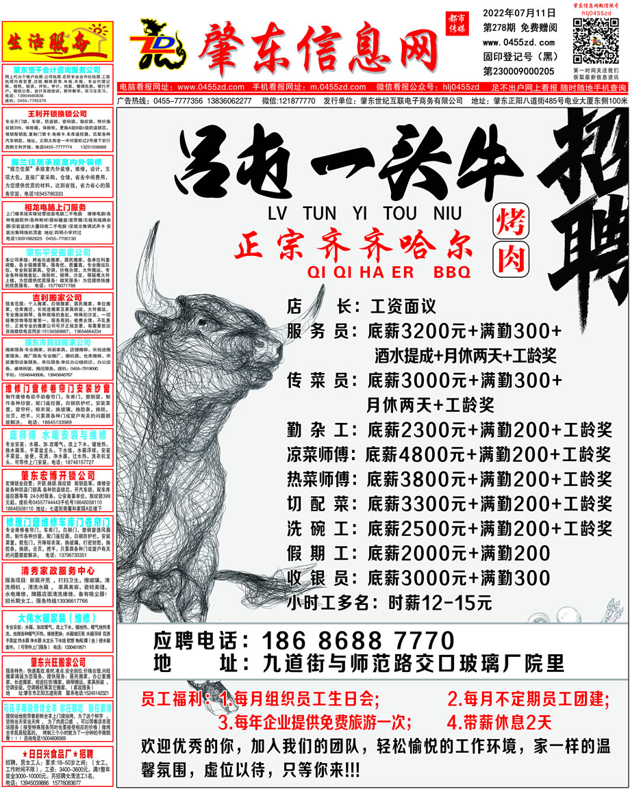 肇東信息網DM報紙2022年7月11日第278期
