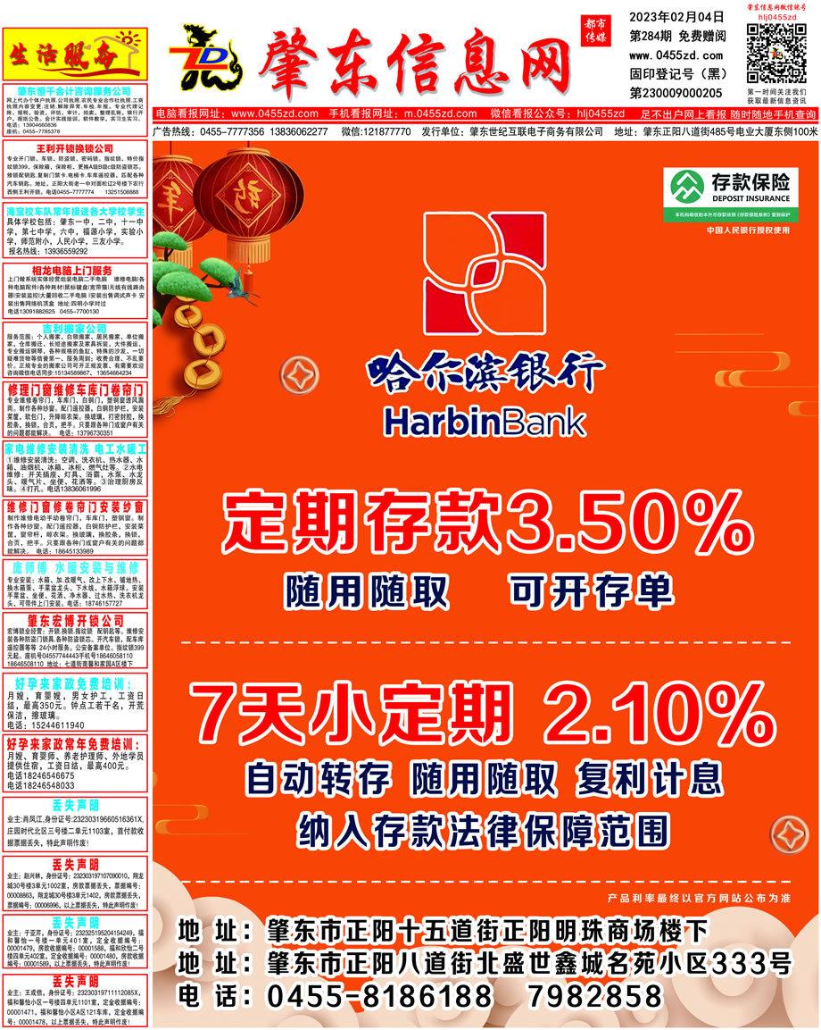 肇東信息網DM報紙2023年2月4日第284期