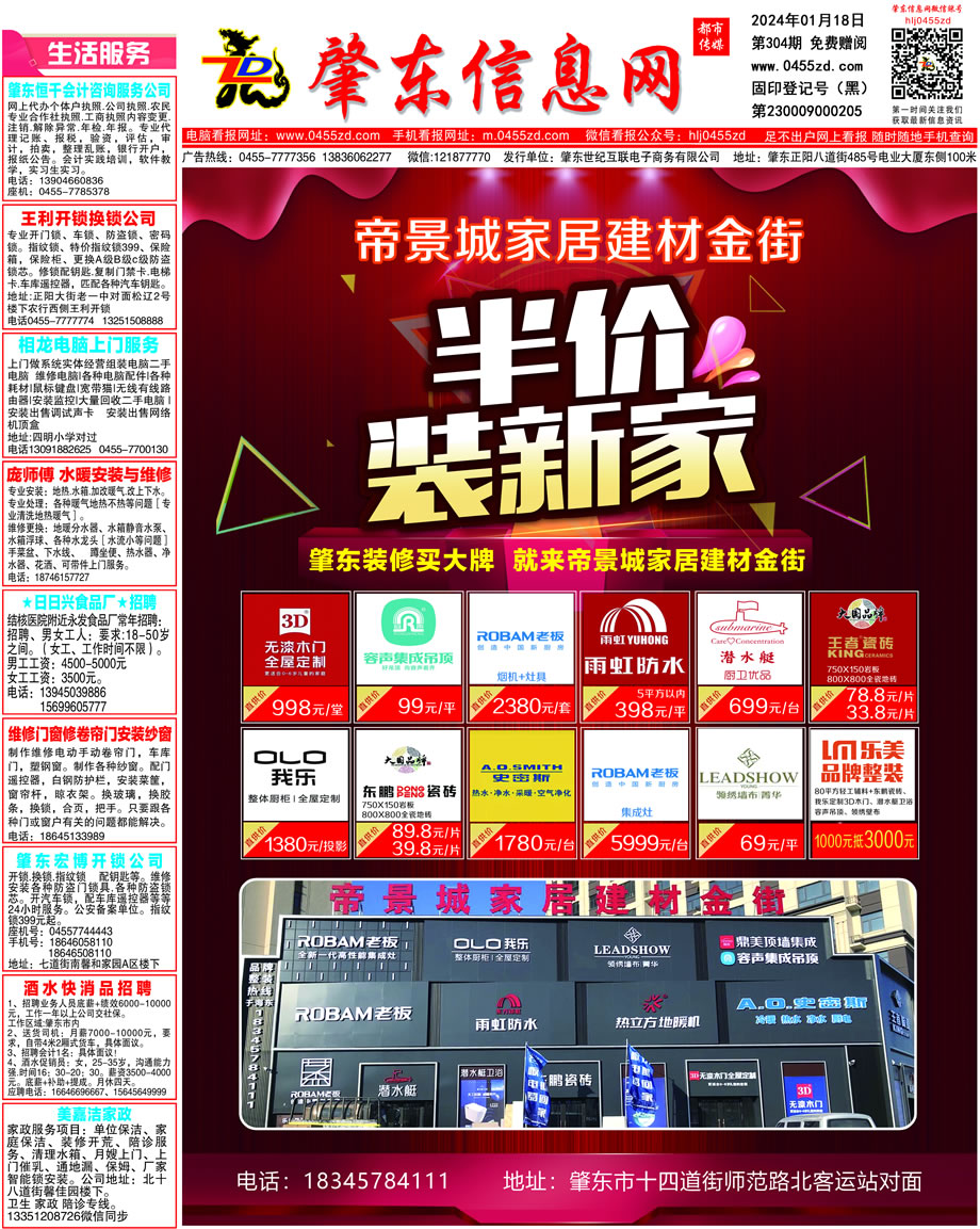 肇東信息網(wǎng)DM報紙2024年1月18日第304期
