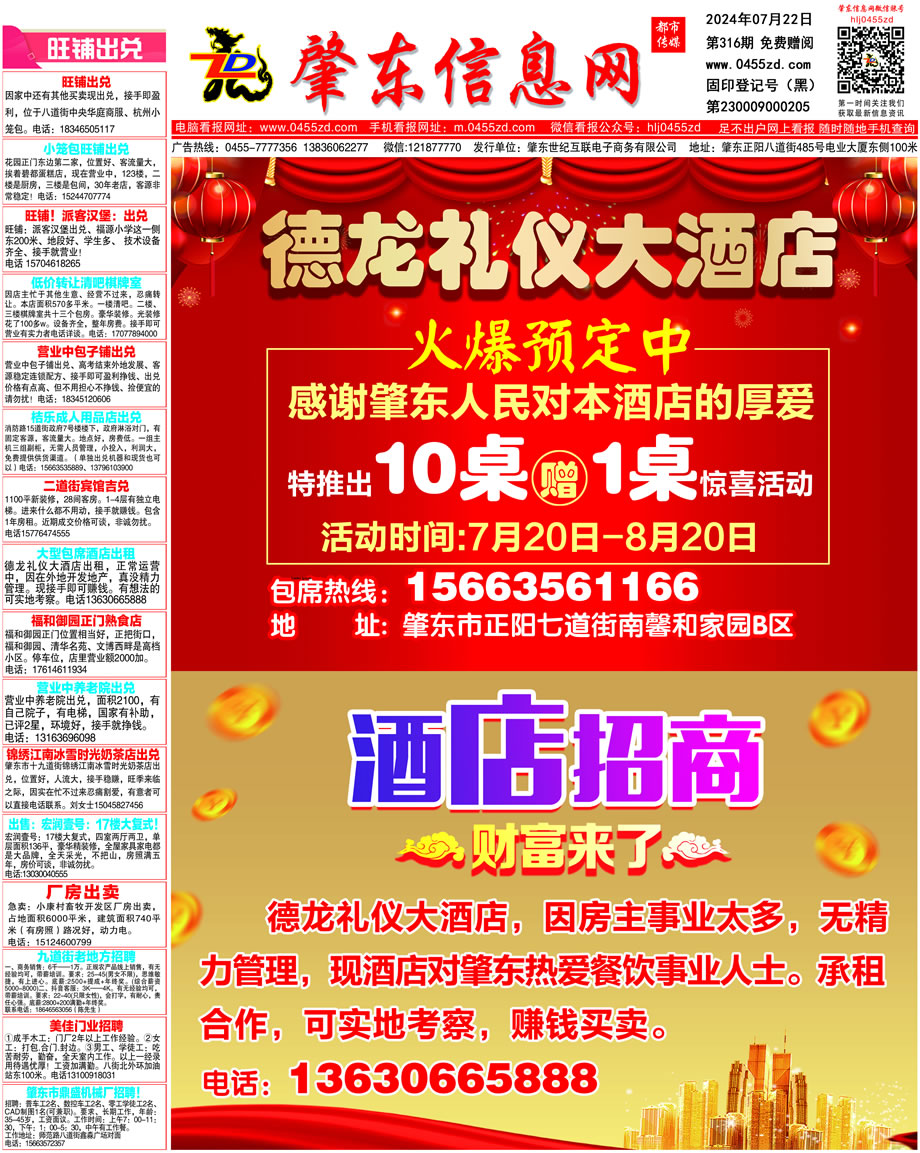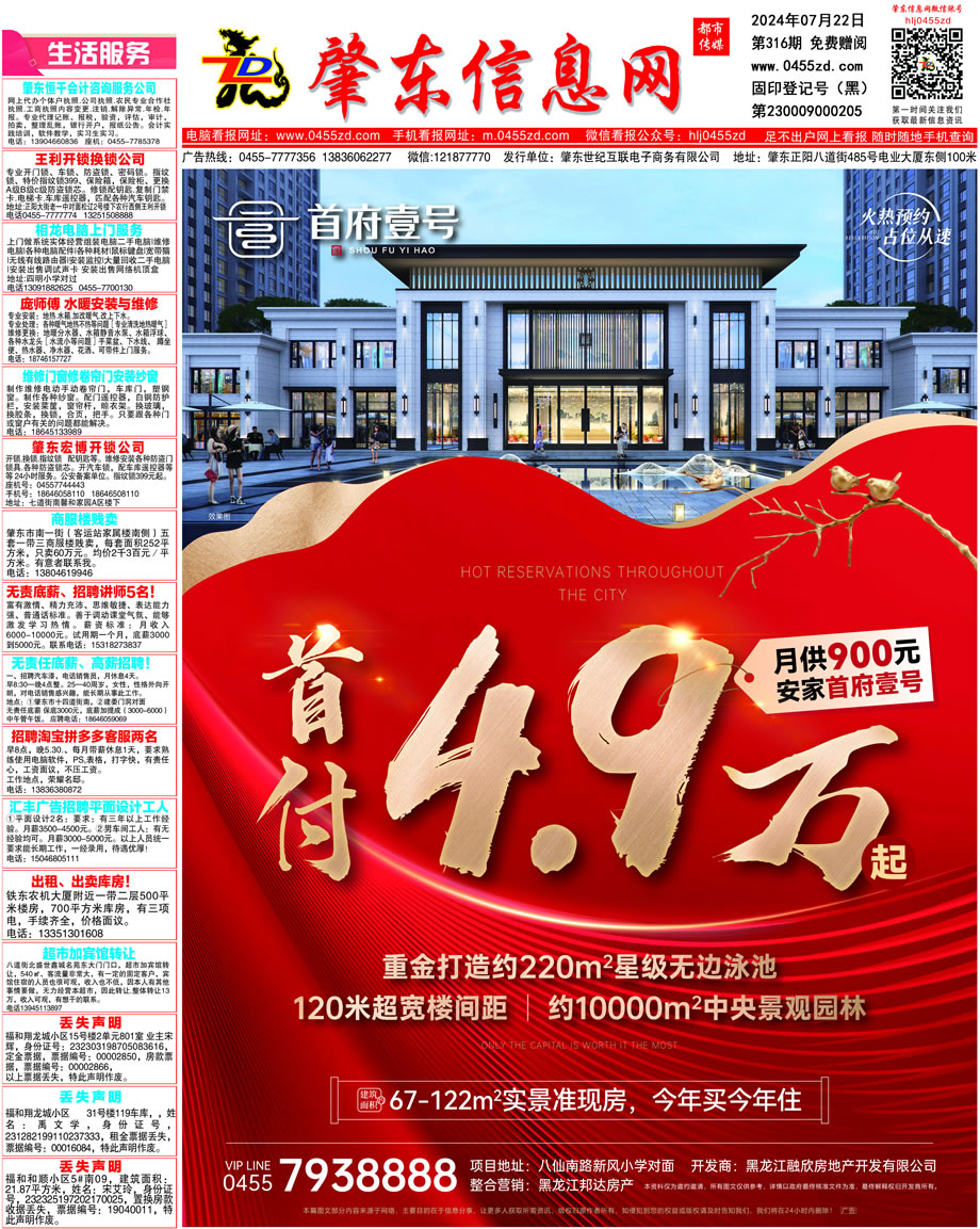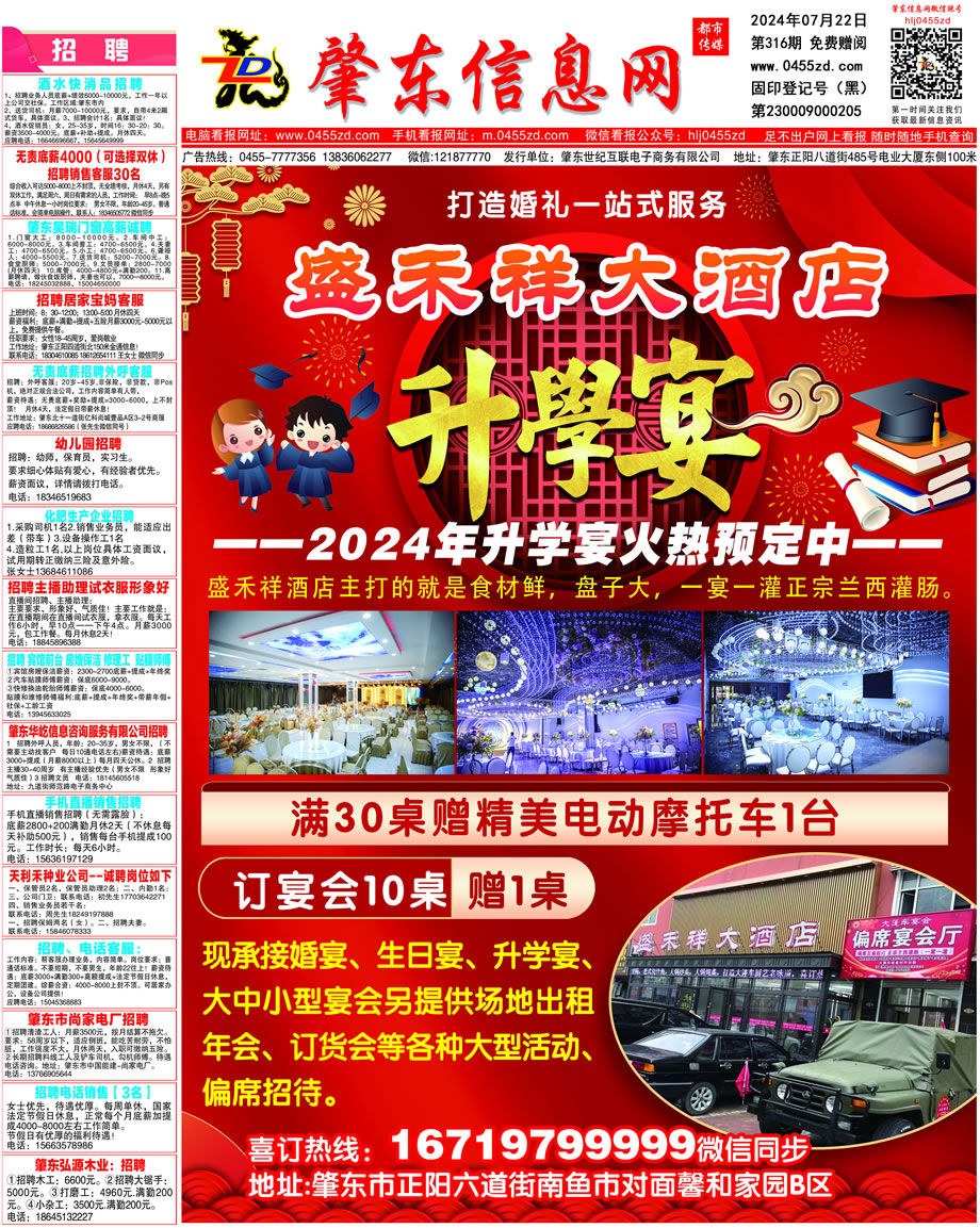 肇東信息網(wǎng)DM報(bào)紙2024年7月22日第316期