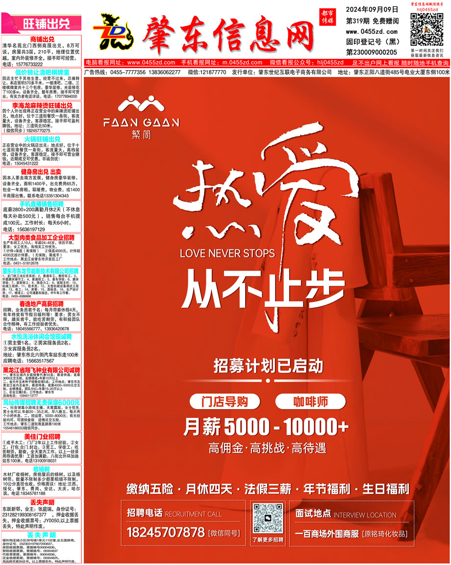 肇東信息網DM報紙2024年9月9日第319期
