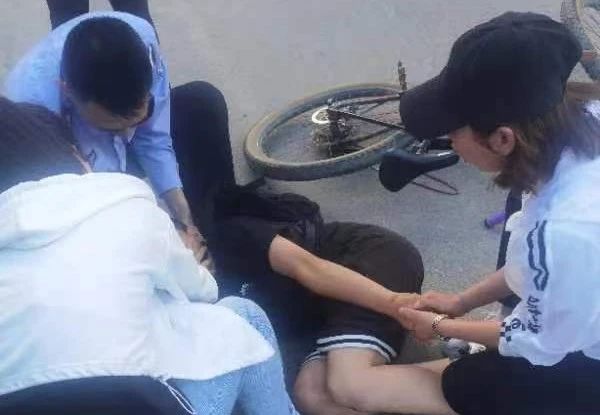 原來,小男孩騎自行車路過此處,可能是操作不當導致連人帶車一起翻倒。三名交警發現小男孩臉色蒼白、口吐白沫、全身不停抽搐,當時情況很嚴重。為防止小男孩咬到自己舌頭,交警李少博將自己的手指伸到他的嘴里,顧不得鉆心的疼痛,一直堅持到小男孩清醒才將手指從其口中拿出來,這時李少博的手指上已被咬出深深的韌痕。同時,周雪峰與附近趕來的巡特警和兩名路過的女士為其掐虎口掐人中,經過大家的及時救治,小男孩很快清醒過來。