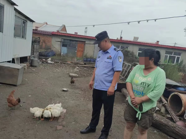 2024年7月22日下午,肇東鎮派出所輔警蔣立強在展望村三棵樹屯進行日常入戶走訪時,接到村民張某華的緊急求助,稱其家中七只小鵝不慎走失,老人情緒焦慮,十分著急。蔣立強立即安撫老人情緒并迅速響應,利用社區網絡資源,通過網格群發布尋物啟事,并親自在周邊區域進行實地搜索。經過不懈努力,最終在屯外草地成功找回走失小鵝,及時歸還給老人。老人對蔣立強的及時幫助表示由衷感謝。