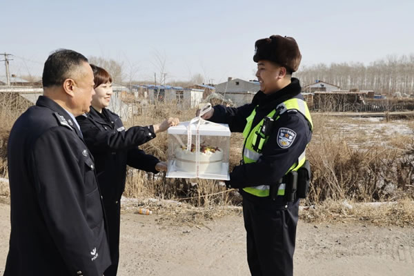 “祝你生日快樂!”一句簡單的祝福,一個精心準(zhǔn)備的專屬蛋糕,一張張戰(zhàn)友暖心的笑臉。3月5日,肇東市公安局政治處副主任帶領(lǐng)政治處民警來到昌五派出所,將一個特別的生日蛋糕送到一線輔警胡瀚卿手中。