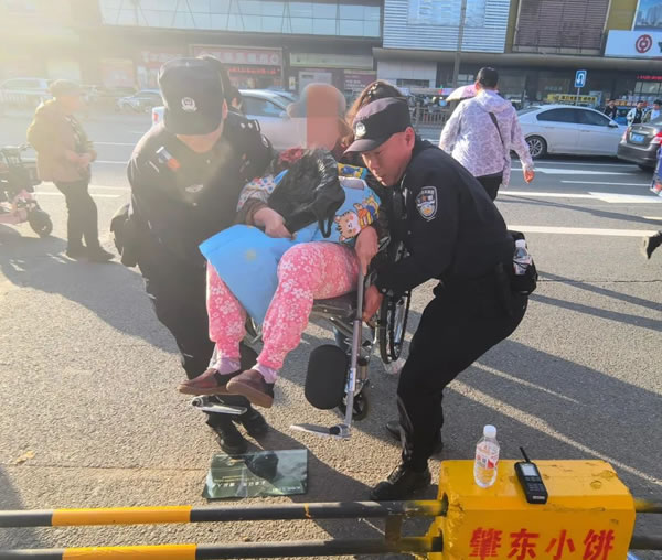據了解,在當天下午17時,一名坐著輪椅的老人準備到小餅節活動現場去感受下美食的魅力,但是走到影劇中心路口時,因為隔離桿的原因,老人無法通過,在通道上停留了許久。此時,負責該片區域的西城派出所教導員李明光看見后,積極主動走到老人身邊了解情況。民警對老人說,我們幫你把輪椅抬過去吧。老人表示她身體有多種疾病,不能抱和背,只能請民警幫忙把輪椅一起抬過去。兩位民警小心翼翼地抬著輪椅通過隔離桿,并一直安全護送到小餅節現場內。民警用了不到兩分鐘將殘老人安全護送這一微小的舉動溫暖人心,獲得幫助的老人更是連忙道謝。