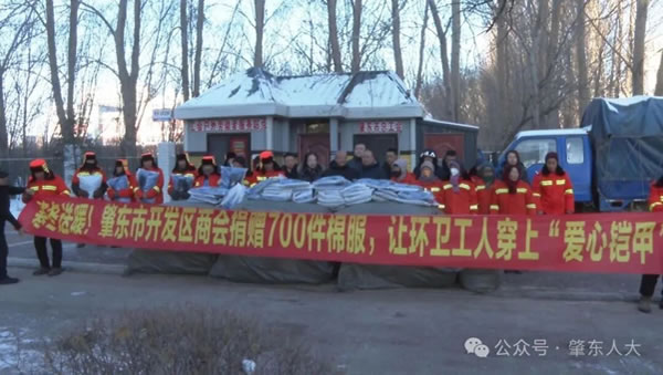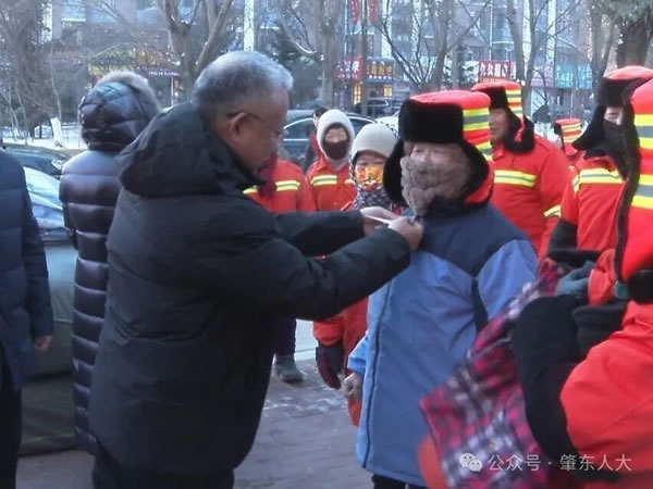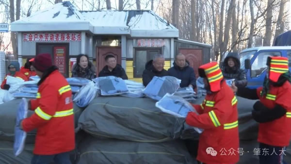 櫛風沐雨,堅守初心。環衛工人作為美麗肇東的建設者與守護者,常年頂風冒雪、披星戴月,用汗水擦亮城市顏值,用堅守詮釋責任擔當。此次愛心捐贈活動,既是市人大代表踐行“人民選我當代表,我當代表為人民”履職承諾的生動實踐,更是社會各界關愛基層勞動者、傳遞文明溫度的具體體現。一件件御寒棉服,不僅為環衛工人抵御了冬日嚴寒,更凝聚起守望相助的社會正能量,讓“奉獻、友愛、互助、進步”的文明風尚在寒日里熠熠生輝。
