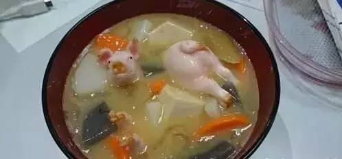 據報道,這些其實并不是真的豬,而是一個個制作逼真精細、由其他材料制成的仿制品。它們被烹制成所謂的“日式炸豬排”、“什錦湯”等料理,雖說構思堪稱奇特,但大多數網友多反饋自己被“嚇了一跳”,并紛紛表示難以接受。
