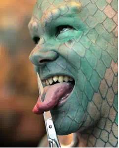 舌頭分叉,頭上長犄角,眼白通紅,人身狗臉,這不都是傳說中的妖精嗎?今天我們就來盤點一下國外奇葩整形,看看你的心理承受能力有多強?
